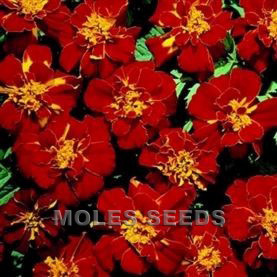 Safaris combine two of the most sought after qualities in Marigolds, earliness and extra large flower size. The Anemone-type flowers are up to 5cm in diameter and have improved doubleness on the first flower. Excellent pack and garden performance. 25cm. Deep rich russet red. De-tailed seed: specially cleaned seed with part of the tail removed for easier automatic sowing.
