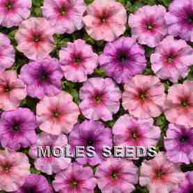 Annual, sow on the compost surface from February-April, germinates in 7-10 days at 20°C. Prick out after 4 weeks into packs or pots as required. Grow on at 12-15°C; growth regulators can be used, according to the manufacturers’ guidelines. Sowing to flowering takes around 12 weeks. 9,000 seeds per gram. Note-Star and Picotee types: Care must be taken when growing these types to avoid high temperatures, high light levels and high soil fertility, as this will increase the proportion of white. Conversely low temperatures, low light and low soil fertility will result in a decrease in the proportion of white. Sell in: 6-packs (basket & ground cover varieties in 9-10cm pots). End Use: Baskets, containers and borders.