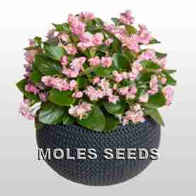 Semperflorens: Annual, sow the very fine seed January-March on surface of compost, keep moist. Mixing the seed with fine silver sand makes it easier to spread it evenly over the compost. Germination takes 2-3 weeks at 22-24°C. Do not exclude light. Prick out after 6 weeks into 6-pack trays or pots. Supplementary light quickens development of the small seedlings. Grow on at 15-18°C. 70,000 seeds per gram. Total production time around 14-16 weeks depending on lighting and sowing time. Sell in: 6 packs and 8-10cm pots. End Use: Versatile, tolerant of rainy weather, long flowering season. For formal bedding, and baskets and containers. For easier sowing choose pelleted seed.