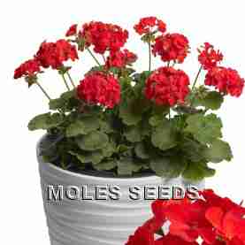 Pelargonium' Tender perennial usually treated as annual. Approximately 220 seeds per gram. Variety selection depends on final use. Multi-headed types such as Multibloom are especially good for early pack sales. For pots and bedding, Mavericks and Horizons are hard to beat. Ivy-leafed types (Tornado and Summer Showers) are a fast-growing alternative to cutting-raised types. Where cost is an issue, the newer F2 types such as Cabaret offer an alternative to the F1 varieties. Sow December-February, or earlier (October) to overwinter cool and flower as early as April. For sales in May, sow early to mid January. Cover with vermiculite A fungicide drench at sowing can help reduce the risk of Pythium disease. Germination is rapid (4-6 days) at 21-23°C, keep constant compost temperature, and do not allow the moisture level in the compost to drop too low, otherwise germination will occur in flushes. Prick out after 4 weeks into packs or pots, grow on at around 15°C - takes 13-15 weeks from sowing to flower depending on the variety. Always provide adequate moisture levels to maintain active growth, but be careful not to over-water as plants, especially if tightly packed, will be prone to Botrytis attacks, and because of this it is preferable to water earlier in the day, so plants can dry off before night time. Cycocel (growth regulator) can be used to ensure a compact habit.