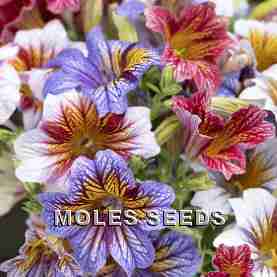 Annual, sow on the compost surface from February-April, germinates in 7-10 days at 20°C. Prick out after 4 weeks into packs or pots as required. Grow on at 12-15°C; growth regulators can be used, according to the manufacturers’ guidelines. Sowing to flowering takes around 12 weeks. 9,000 seeds per gram. Note-Star and Picotee types: Care must be taken when growing these types to avoid high temperatures, high light levels and high soil fertility, as this will increase the proportion of white. Conversely low temperatures, low light and low soil fertility will result in a decrease in the proportion of white. Sell in: 6-packs (basket & ground cover varieties in 9-10cm pots). End Use: Baskets, containers and borders.