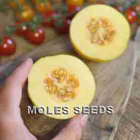 A mini-melon variety that can be used for both commercial production and hobby gardening. The fruit have a sweet sugary flavour and pleasant aroma. The skin, which turns yellow when fully ripe, is thin and allows the fruit to be eaten like an apple. Plants produce up to eighteen 100-150 gram fruits per plant.