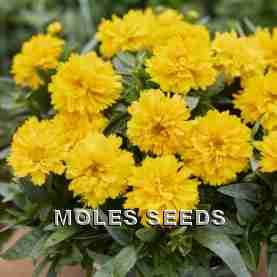 Semi double golden yellow flowers, mounded well branched plant habit. First year flowering. Height 30-35cm. Total crop time 13-15 weeks.