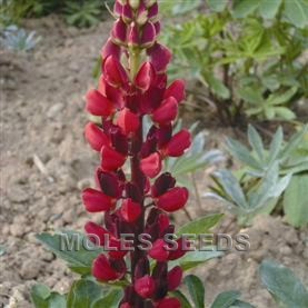 Well-known standard lupins, flower spikes reaching 100cm, in self and bicolours. Essential perennial for herbaceous borders. Carmine shades. 90cm-1.2m. Treated to reduce the risk of Colletotrichum.